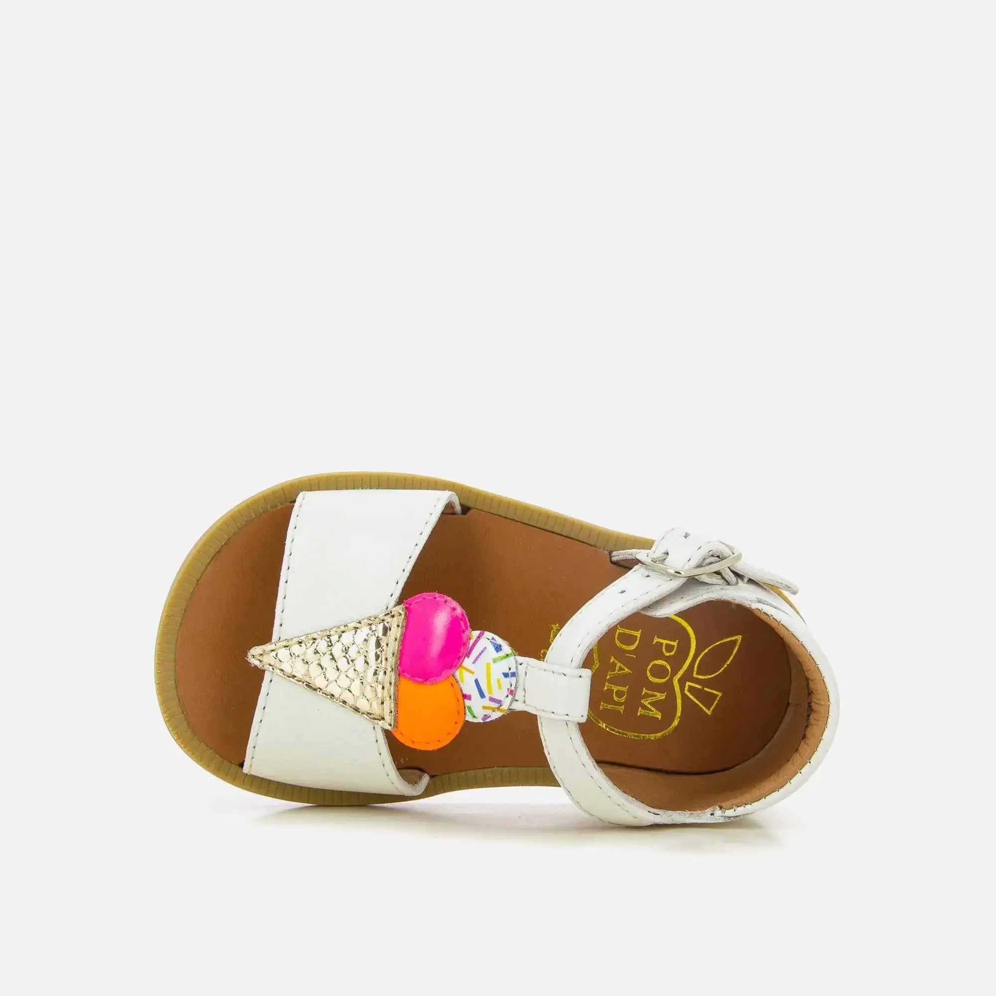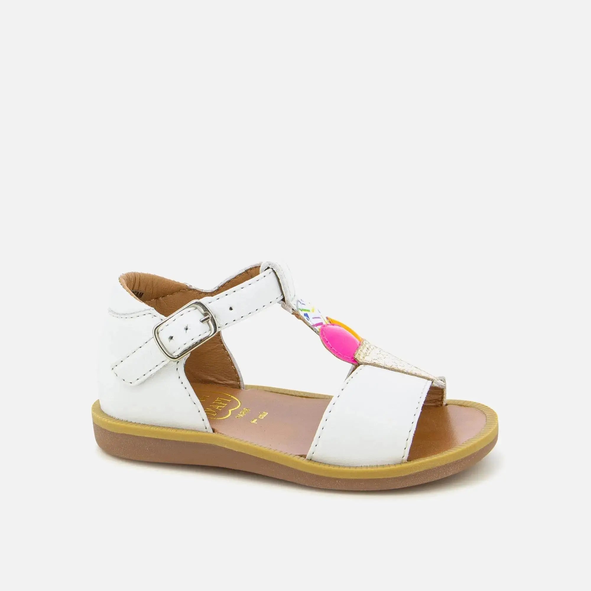 Poppy Ice Cream est une sandale pour enfants présentée ici en cuir blanc et empiècements glace mutlicolore. Légère et dotée d’une semelle souple pour le bon déroulement du pied, elle a une tige haute, pour un bon maintien de la cheville. Facilement réglable grâce à sa boucle, elle s’ajustera aux chevilles fines comme plus fortes.
