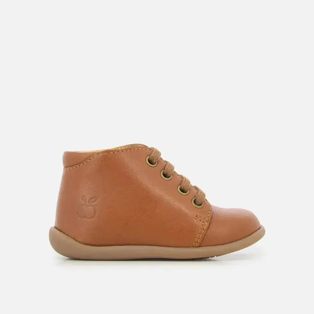 Cette chaussure premiers-pas à lacets pour enfants est présentée dans une version en cuir lisse camel. Légère et dotée d'une semelle en caoutchouc, cette chaussure est conçue avec des matériaux de qualité pour le bon développement du pied. Un renfort Anti-Twist placé à l'arrière de la chaussure assure un maintien et une stabilité optimale, tout en offrant une souplesse à l'avant du pied.