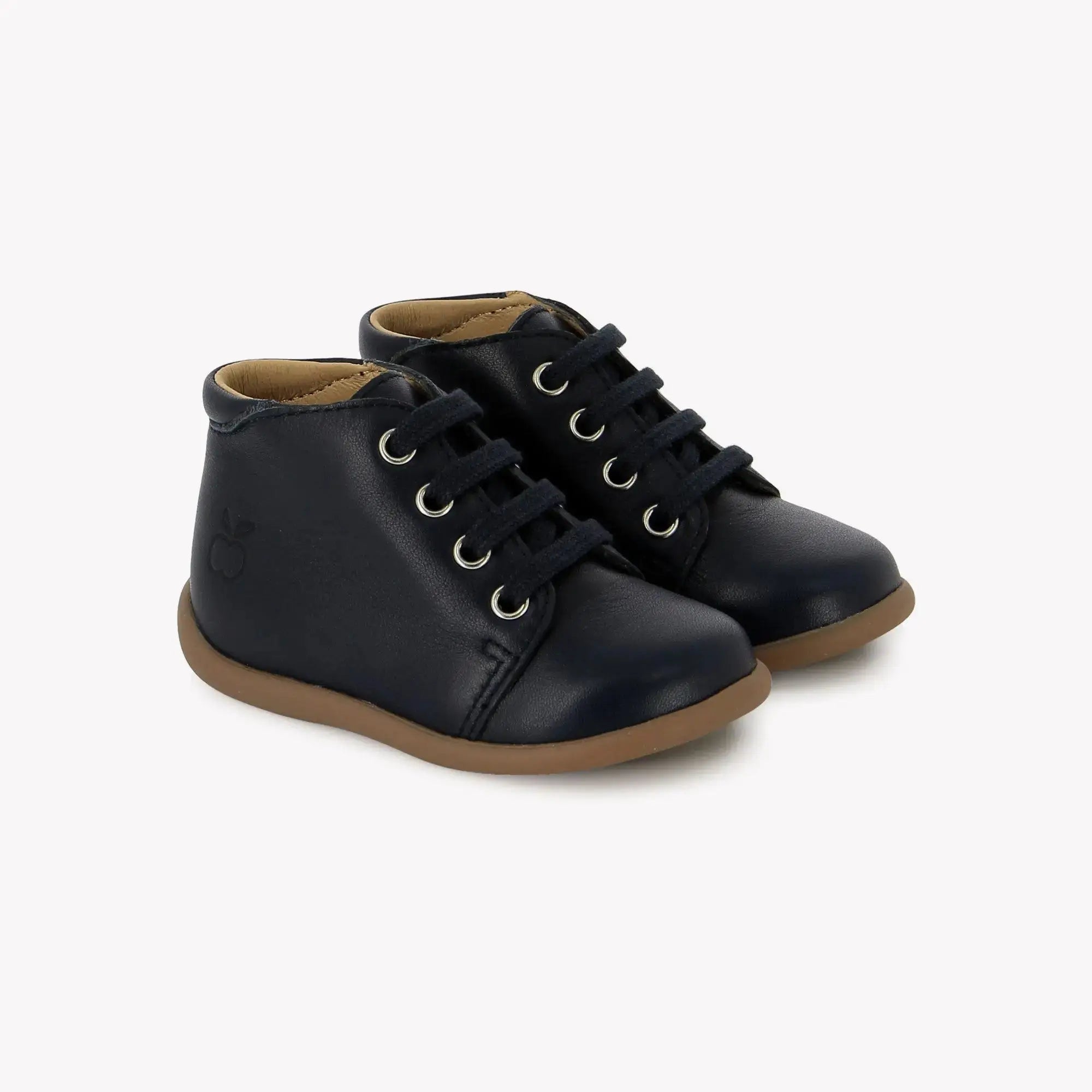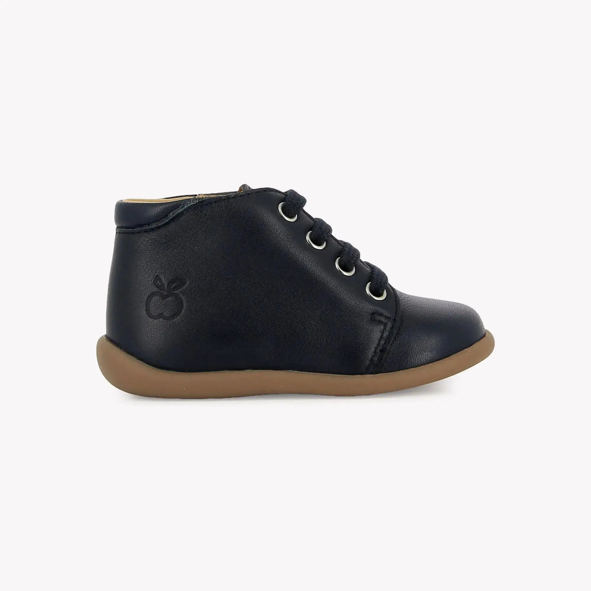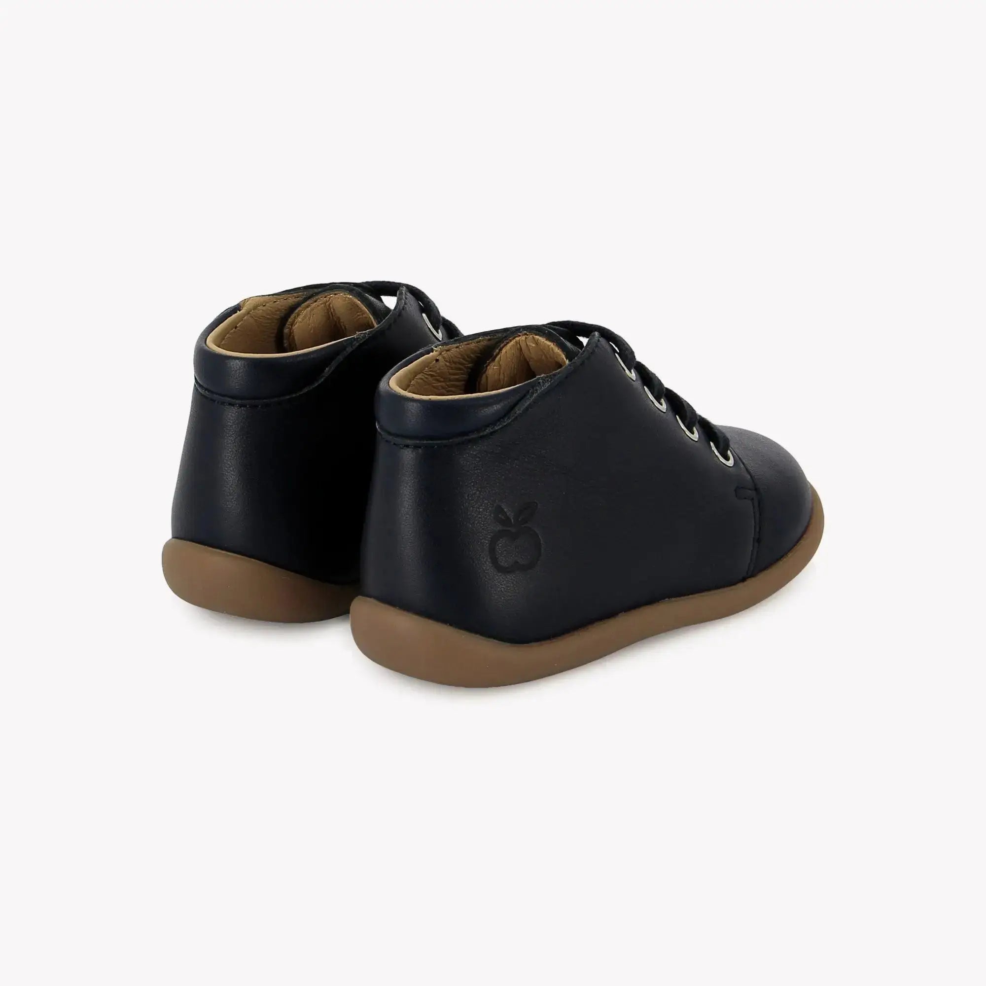 Cette chaussure premiers-pas est équipée d’une semelle souple en caoutchouc antidérapant et d’un cambrion Anti-Twist© breveté, intégré dans la semelle au niveau du talon. Ce système prévient les torsions de la cheville, tout en conservant une grande souplesse à l’avant du pied. Confectionnée à partir d'un cuir premium, soigneusement sélectionné, elle allie élégance et technicité, pour accompagner les premiers pas. Le col et la languette sont matelassés pour davantage de confort. La fermeture à lacets assure un ajustement précis, tandis que la large ouverture facilite l’enfilage.