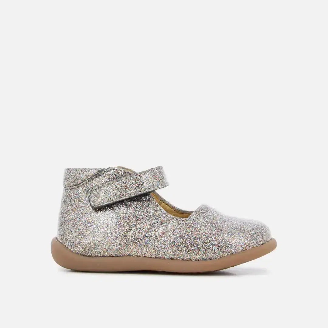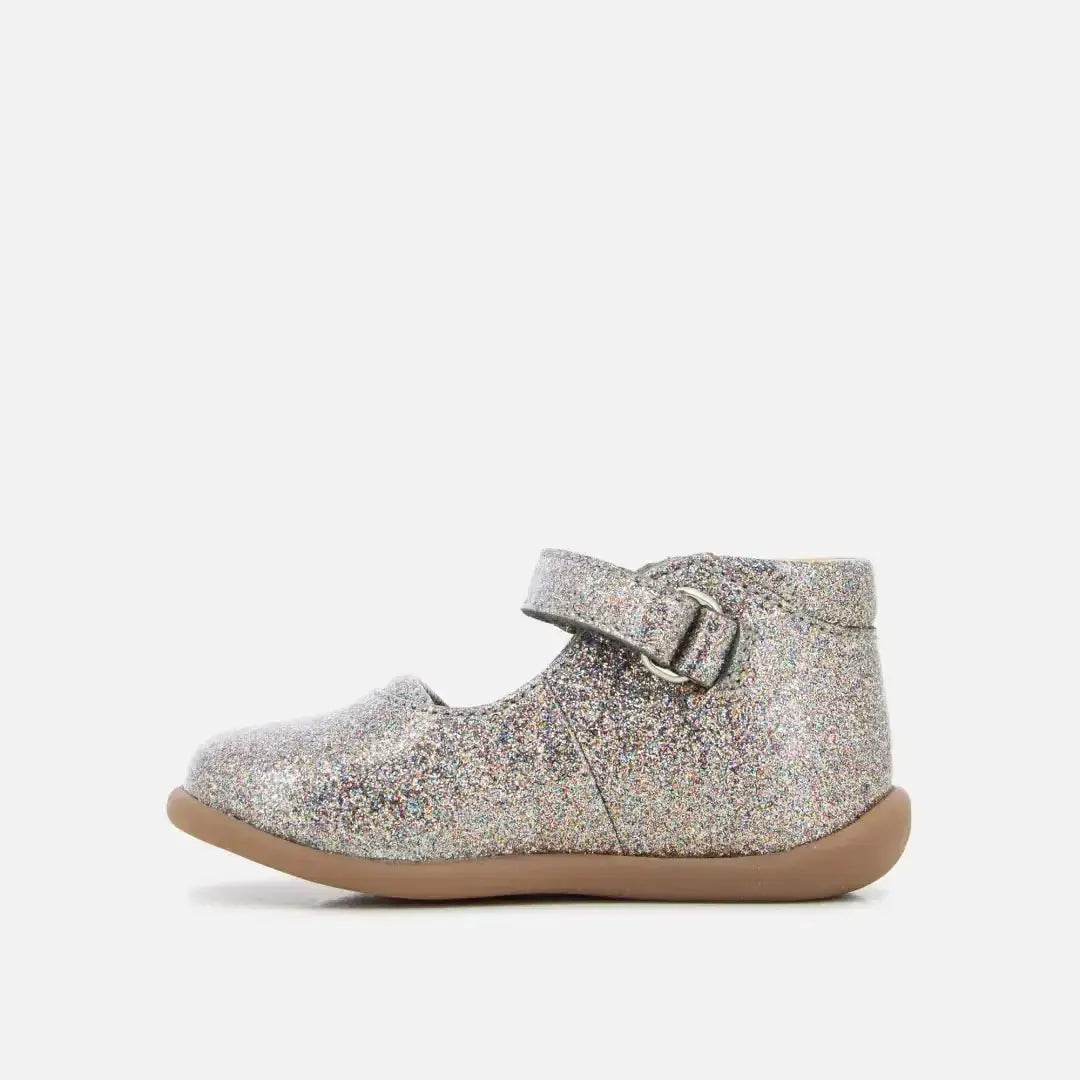 Cette chaussure premiers-pas est présenté dans une version en cuir métallisé multicolore. Légère et dotée d’une semelle en caoutchouc, cette chaussure est conçue avec des matériaux de qualité pour le bon développement du pied. Un renfort Anti-Twist placé à l’arrière de la chaussure assure un maintien et une stabilité optimale, tout en offrant une souplesse à l’avant du pied. Elle s'ajuste facilement aux chevilles grâce à son scratch.