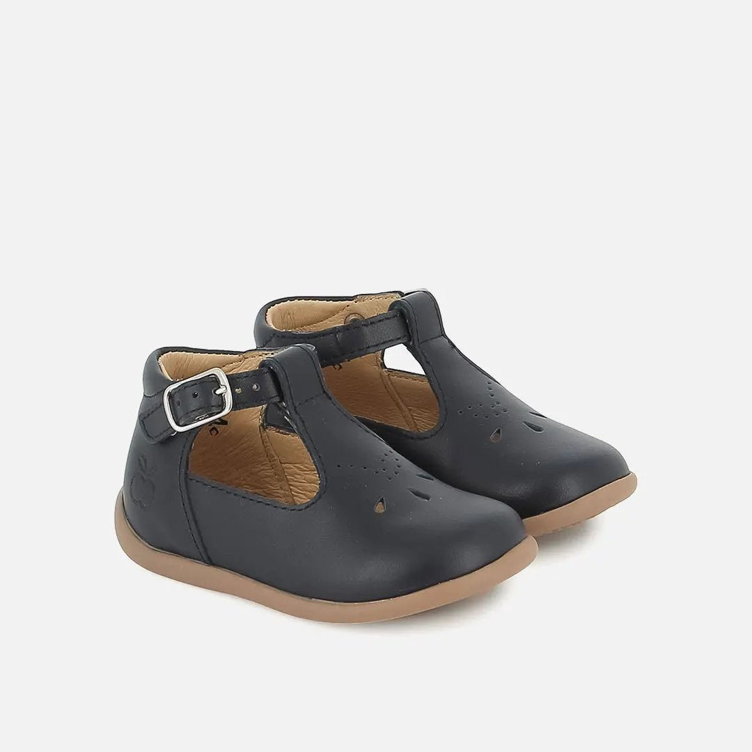 Ce salomé premiers-pas est présenté dans une version en cuir lisse bleu marine, avec des perforations à l'avant. Légère et dotée d’une semelle en caoutchouc, cette chaussure est conçue avec des matériaux de qualité pour le bon développement du pied. Un renfort Anti-Twist placé à l’arrière de la chaussure assure un maintien et une stabilité optimale, tout en offrant une souplesse à l’avant du pied. Elle s'ajuste facilement aux chevilles grâce à sa boucle réglable à la cheville.