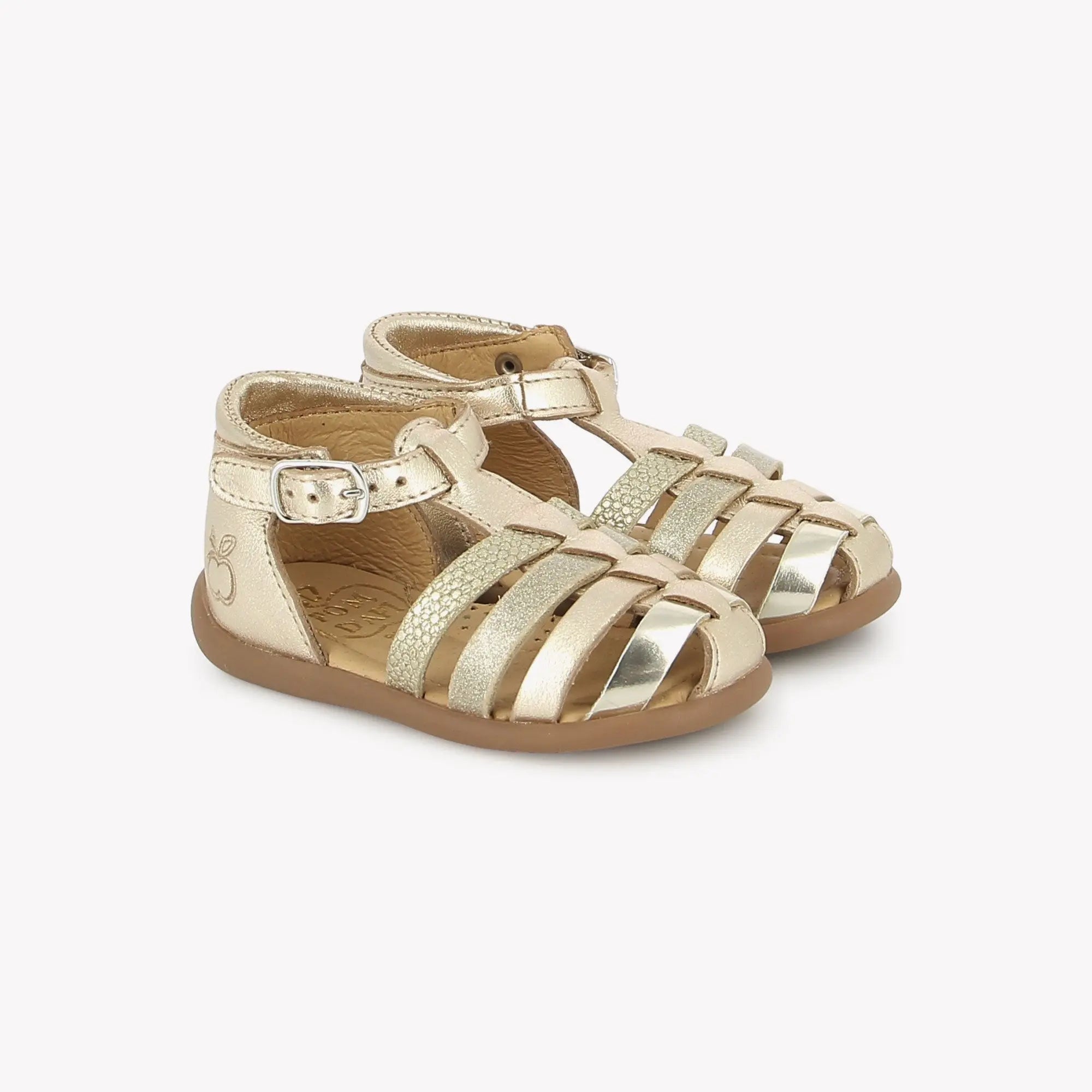 Confectionnée dans un cuir premium soigneusement sélectionné, cette première sandale s’ajuste facilement grâce à sa fermeture par scratch, garantissant un maintien sûr et un enfilage rapide à chaque pas.